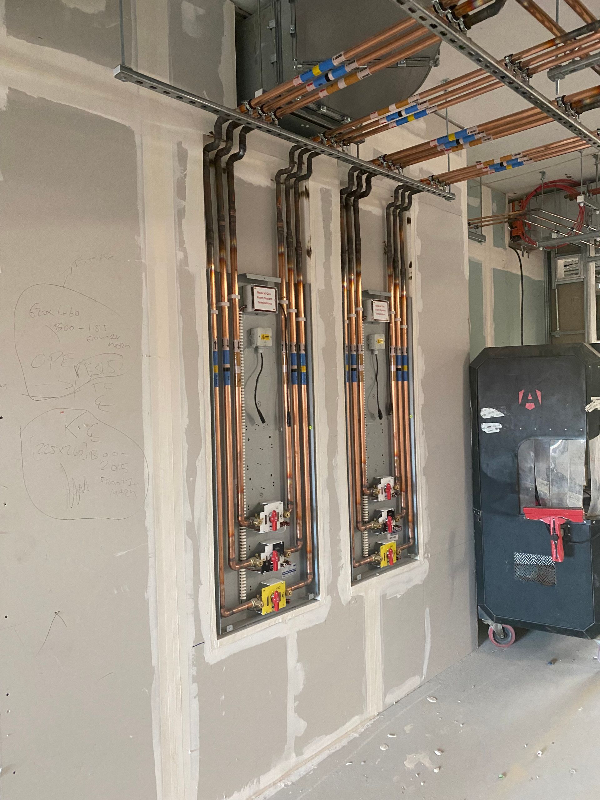 On completion on a phased basis, the medical gas installation was rigourously checked and verified by 3rd Party AE (Mr Graeme Dunn} appointed by the hospital. All systems were successfully verified/ validated and signed off to exacting HTM 0201 standards.