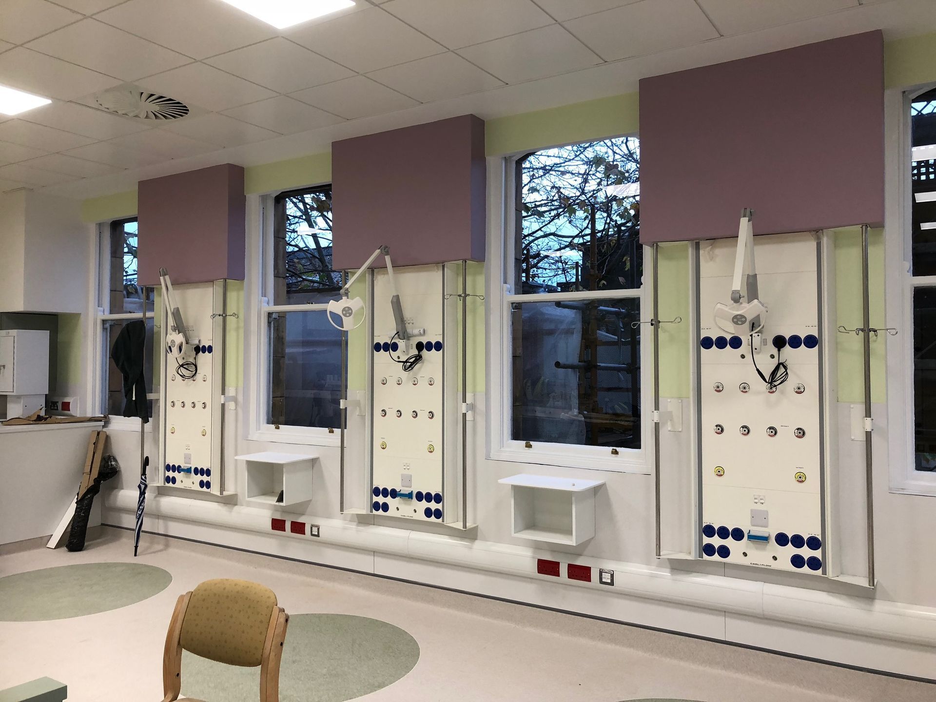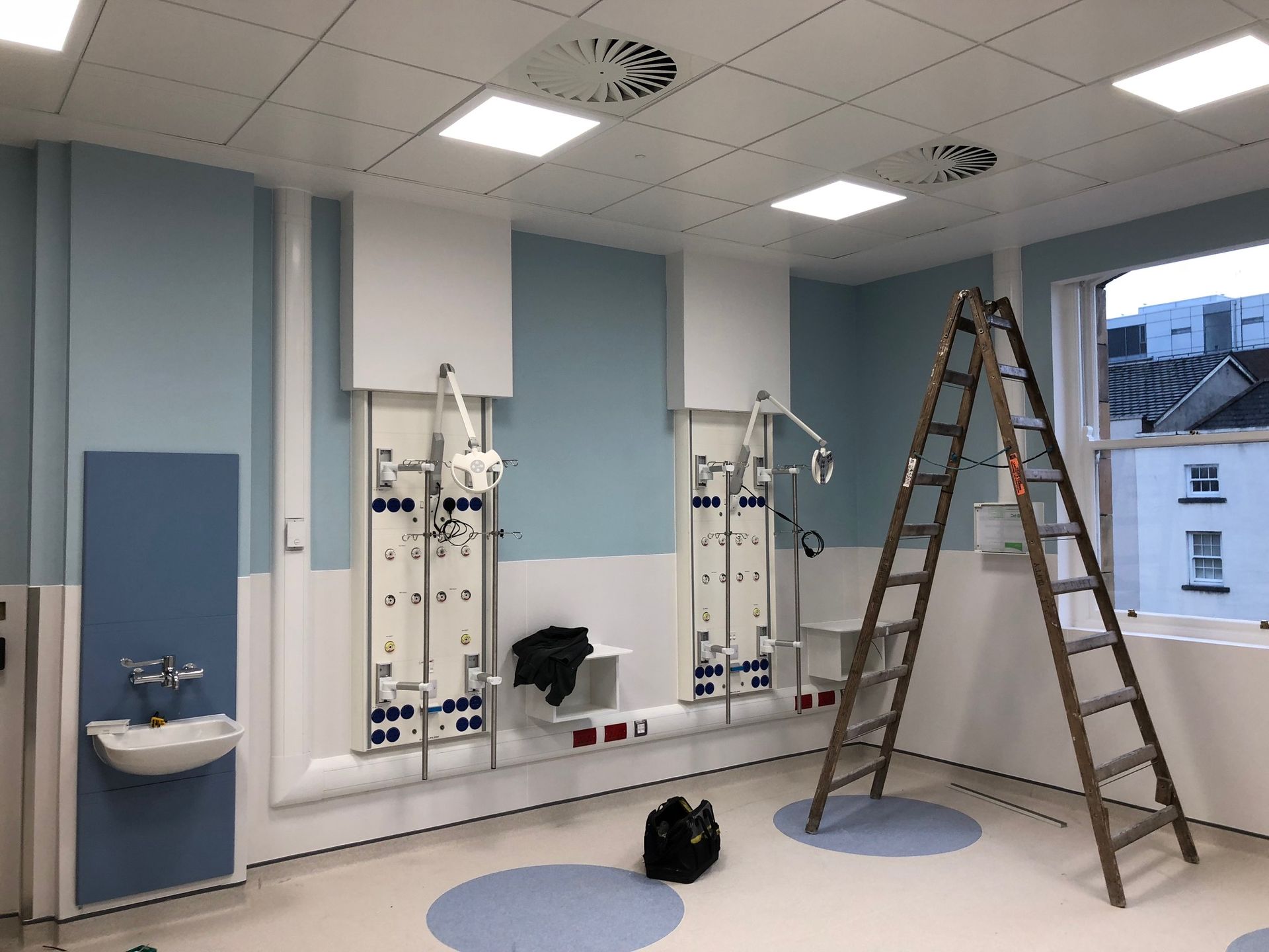 Works involved a highly intensive programme for both isolation / strip-out / tie-in and phased handover of the new area. All works were completed within a restricted site fully working Maternity Hospital 24/7. The new facility provided a complex arrangement of dual circuitry to 22no. new Cot Positions. New Primary O2 / MA4 and Vac Mains were installed throughout.